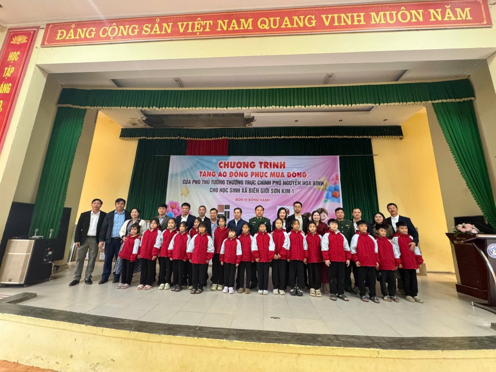 Trong khuôn khổ chương trình, đoàn công tác đã trao tặng 1.343 áo đồng phục mùa đông cho học sinh Trường Tiểu học và THCS Sơn Kim 1. Đây là món quà có ý nghĩa thiết thực, giúp các em thêm ấm áp trong mùa lạnh, đồng thời tạo động lực để các em yên tâm đến trường, vững bước trong hành trình học tập.